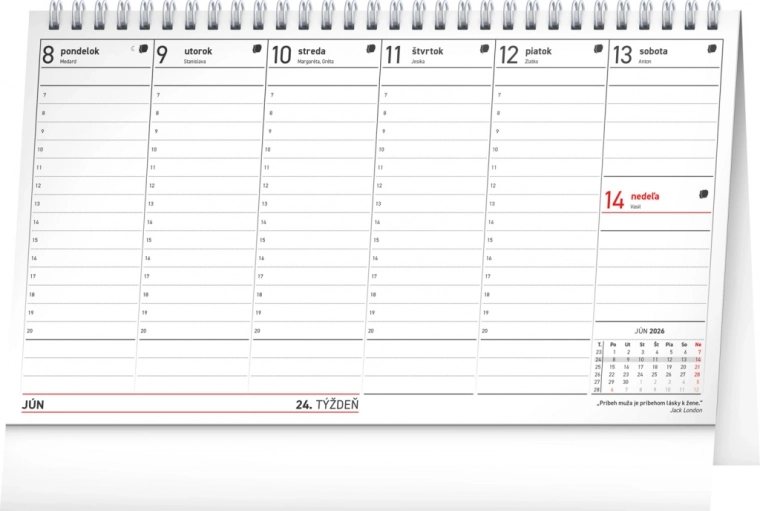 Kalendarz biurkowy Notique Notatkowy Podatkowy z Cytatami 2026 został zaprojektowany, aby pomóc Ci zachować kontrolę nad wszystkimi ważnymi terminami podatkowymi. Zawiera kalendarium kolumnowe z miesięcznym przeglądem dla każdego tygodnia.