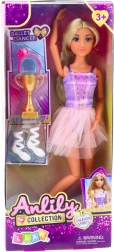 Lalka Anlily Baletnica w Sukience ma 30 cm wysokości i jest wykonana z bezpiecznego i trwałego materiału. Jej delikatne rysy twarzy oraz długie blond włosy pozwalają na tworzenie kreatywnych fryzur. W zestawie znajduje się złoty puchar, różowe baletki oraz opaska, które doskonale dopełniają taneczny strój lalki.