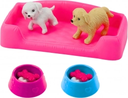 Zestaw obejmuje świetne akcesoria, w tym dwa pieski – białego i kremowego, różowe legowisko oraz dwie miski z karmą. Dzieci mogą opiekować się pupilami, układać je w legowisku i uczyć się odpowiedzialności oraz empatii.