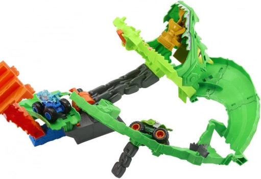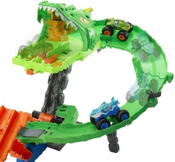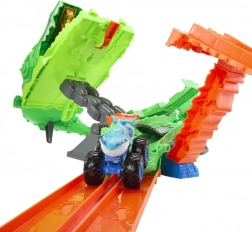 Gdy smok zostanie pokonany, wystrzel auto do jego paszczy i zdobądź trofeum! Zestaw jest kompatybilny z elementami Speed Snap do rozbudowy torów i działa z większością pojazdów Hot Wheels w skali 1:64. Idealny dla dzieci od 4 lat – do odtwarzania scen z YouTube i tworzenia własnych historii.