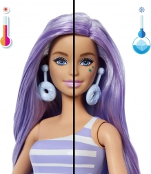 Odkryj magiczny świat niespodzianek z lalką Barbie Pop Reveal w fioletowej odsłonie. W kubeczku inspirowanym słodkościami czeka 8 niespodzianek: pachnąca lalka, stylowe akcesoria, ściskany zwierzaczek, legowisko oraz kolorowa przemiana makijażu przy użyciu zimnej/ciepłej wody. Świetny prezent dla dzieci od 3 lat.