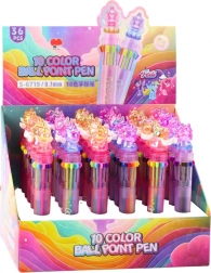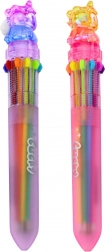 Jednorożec wielokolorowe pióro zawiera automatyczny mechanizm wyboru koloru - wystarczy nacisnąć przycisk z boku i wybrać pożądany kolor. Korpus pióra jest ozdobiony efektem tęczy i przezroczystą ozdobą jednorożca na górze, która przyciąga uwagę i czyni pióro ulubionym dodatkiem każdego dziecka.