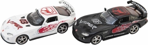 Stylowy model samochodu DODGE VIPER GTS‑R w skali 1:36 ucieszy dzieci i kolekcjonerów. Metalowo‑plastikowe wykonanie, otwierane drzwi oraz napęd z naciągiem (pull‑back) zapewniają dynamiczną jazdę. Dostępny w 4 wersjach kolorystycznych.