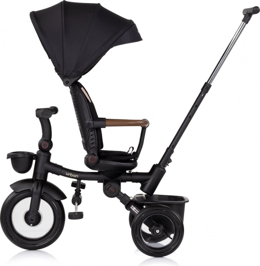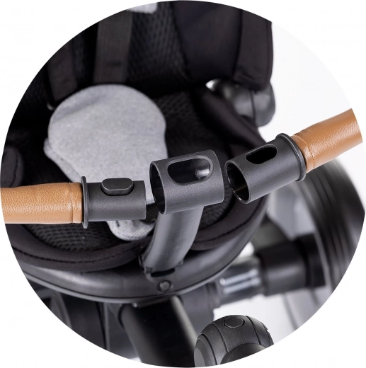 Ten trójkołowiec oferuje multifunkcyjność 2w1, co oznacza, że łatwo zmienia się w rowerek do samodzielnej jazdy dziecka. Wyposażony jest w wysokiej jakości gumowe koła zapewniające długą żywotność. Siedzisko z obrotowym mechanizmem 360° umożliwia dwie pozycje jazdy, a regulowana wysokość rączki dopasowuje się do potrzeb osoby dorosłej.