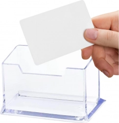 Elegancki i funkcjonalny uchwyt na wizytówki to idealne rozwiązanie do biur, recepcji, stanowisk obsługi klienta oraz na targi i konferencje. Wykonany z wysokiej jakości przezroczystego plastiku, prezentuje się nowocześnie i profesjonalnie.