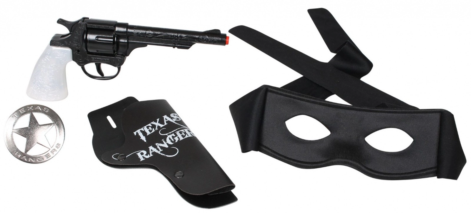 Wejdź do świata Dzikiego Zachodu z naszym zestawem kowbojskim, który zawiera metalowy rewolwer na 8 nabojów, kaburę, maskę kowboja, odznakę i pasek. Idealny dla dzieci od 3 lat.