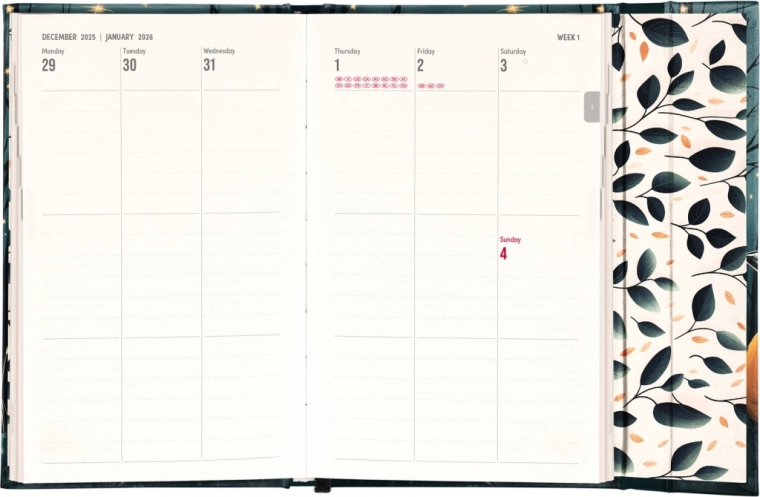 Tygodniowy kalendarz w języku angielskim z międzynarodowymi świętami i praktycznym magnetycznym zamknięciem jest idealny dla tych, którzy chcą mieć swoje plany przejrzyście pod kontrolą.