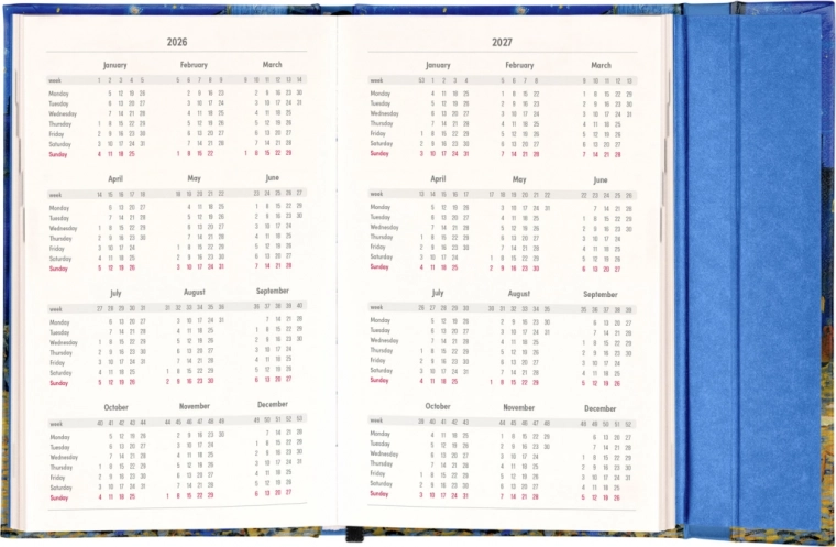 Elegancki tygodniowy terminarz Vincent van Gogh 2026 z magnetycznym zamknięciem do przejrzystego planowania.