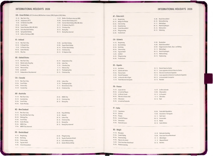 - Połowa z dwutygodniowym horyzontalnym kalendarium zawiera także święta międzynarodowe.