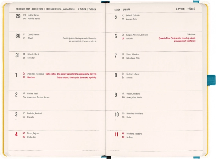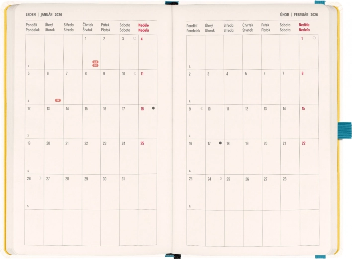 PLANBOOK Zielnik 2026 to idealne rozwiązanie dla wszystkich, którzy chcą mieć planowanie i notatki w jednym miejscu. Pierwsza połowa zawiera dwutygodniowe kalendarium poziome z czeskimi i słowackimi świętami, co ułatwia planowanie. Druga połowa oferuje wystarczającą liczbę liniowanych stron na notatki, co jest perfekcyjne do kreatywnego myślenia i pracy nad projektami.
