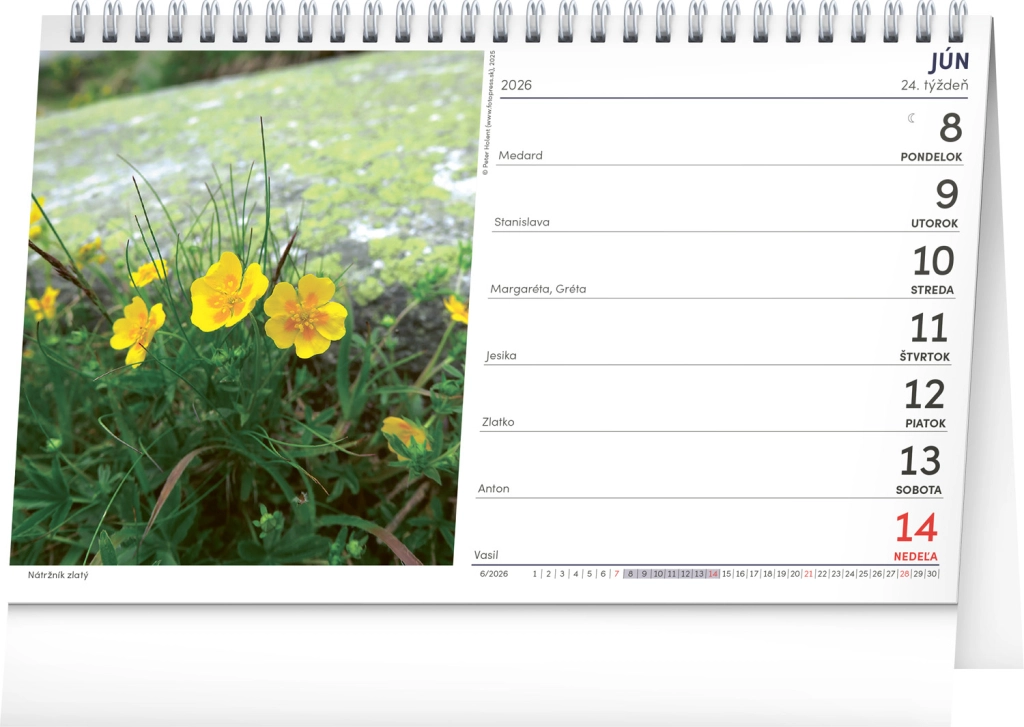 Zawiera słowackie tygodniowe kalendarium, w którym znajdziesz nie tylko imieniny i święta, ale także dni pamięci, co pomoże Ci odnaleźć się w natłoku codziennych obowiązków.