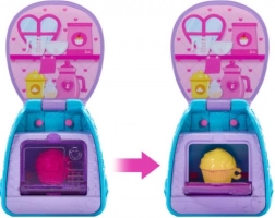 Lalka Chelsea jest gotowa na radosną zabawę ze swoim wyjątkowym plecakiem! Otwórz plecak, aby odkryć niespodziankę: piekarnik do pieczenia babeczek! Plecak zmienia się w mały zestaw do zabawy!