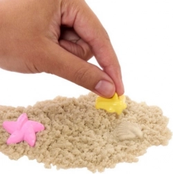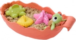 - Zabawę piaskiem urozmaicają łopatka i trzy foremki inspirowane oceanem, które pozwalają tworzyć różne kształty i wzory.