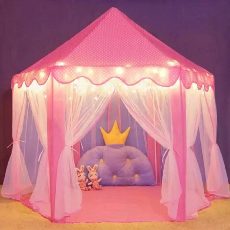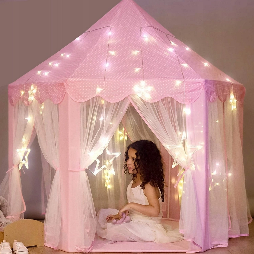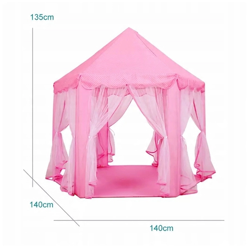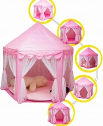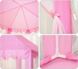 Namiot Zamek Księżniczki zapewnia przestronne miejsce do zabawy, do którego zmieszczą się ulubione zabawki, poduszki, a nawet kilkoro małych przyjaciół. Jego lekka i intuicyjna konstrukcja umożliwia szybki montaż i demontaż, co ułatwia przechowywanie i przenoszenie.