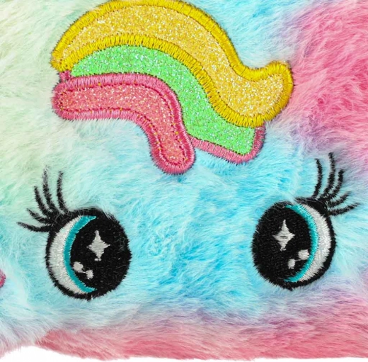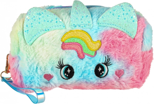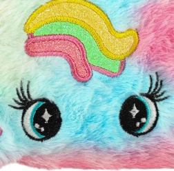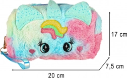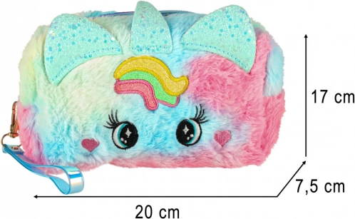 Kosmetyczka ma uroczy design z tęczowym wzorem i unikalnymi uszkami, co czyni ją świetnym dodatkiem estetycznym dla każdej małej księżniczki.