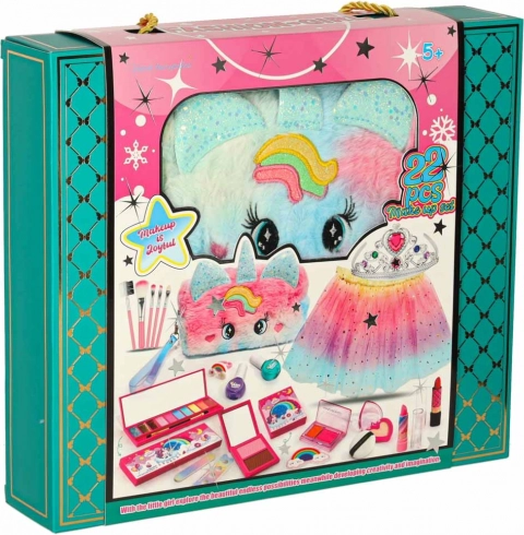 Odkryj świat kreatywności z tym atrakcyjnym zestawem kosmetyków i akcesoriów dla dzieci. Zawiera 22 różne elementy, które zapewniają niekończącą się zabawę i możliwość eksperymentowania z kolorami oraz teksturami.