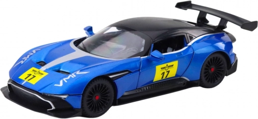 Samochód sportowy w skali 1:22 oferuje realistyczne wykonanie i dynamiczny wygląd. Metalowe nadwozie zapewnia trwałość oraz estetyczny, solidny wygląd jak w prawdziwych autach wyścigowych. Starannie dopracowane detale, kontrastowe kolory i sportowe oznaczenia czynią go atrakcyjnym zarówno na półce, jak i w ruchu.
