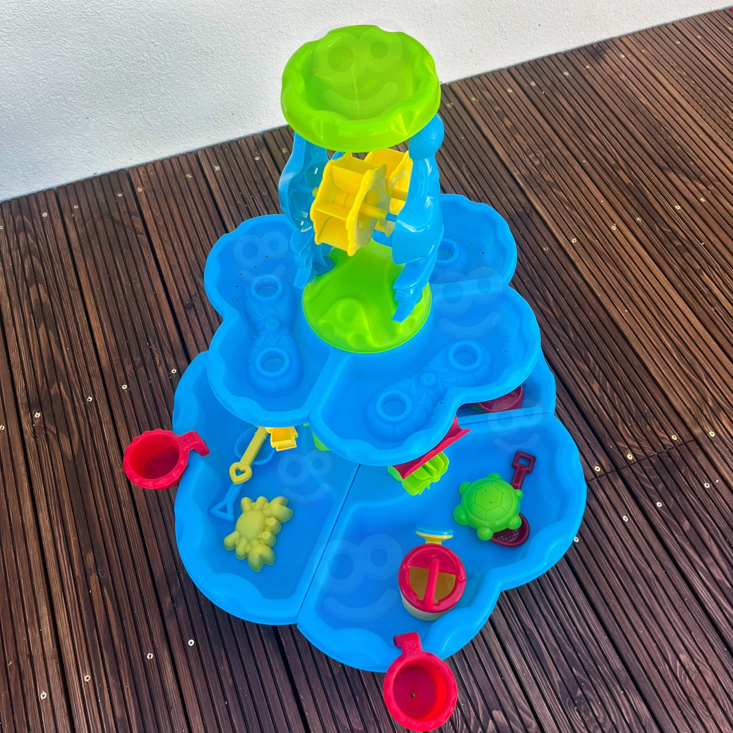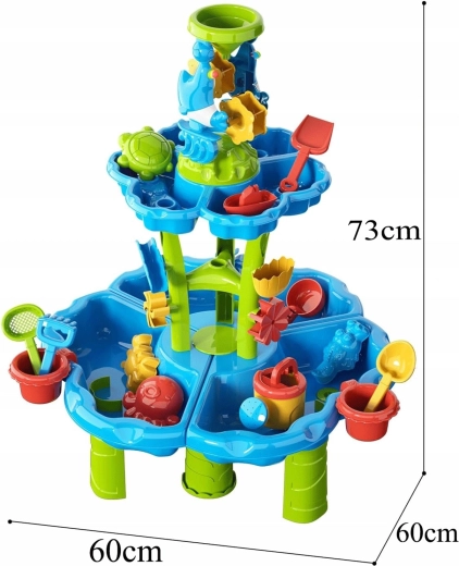Trzy oddzielne komory pozwalają napełnić jedną wodą, a drugą piaskiem. Idealne do zabaw sensorycznych i kreatywnego budowania.