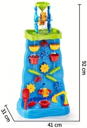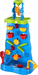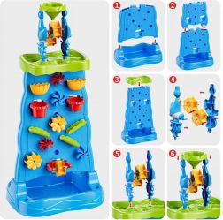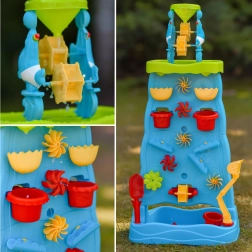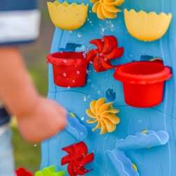 Ta kolorowa ściana wodna z wysoką wieżą i kaskadami oferuje dzieciom nieskończoną dawkę zabawy wodą i piaskiem. Dzięki modułowej konstrukcji mogą zmieniać rozmieszczenie lejków, rynienek i kół, obserwując przyczynę i skutek podczas przepływu wody. Dwustronne wykonanie pozwala bawić się jednocześnie po obu stronach – idealnie dla rodzeństwa i przyjaciół.