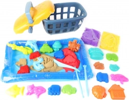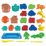 - - Duży wybór foremek (w tym zwierzęta: słoń, delfin, aligator, ryba; pojazdy: auto, pociąg; budowle: dom, grzybek)