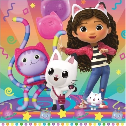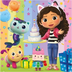 Ciesz się zabawą i przygodą z dziecięcymi puzzlami „Gabinowy zaczarowany domek: Uroczystość”. Zawierają trzy przepiękne obrazki, każdy po 55 elementów, które rozwijają kreatywność i cierpliwość małych miłośników puzzli.