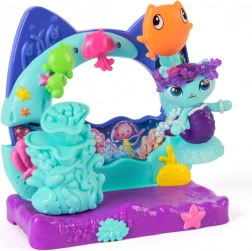 - Stojak z podwodnymi elementami, figurka Ryboczki, akcesoria, niespodzianka w kapsule, kod QR