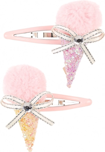 Te spinki do włosów są nie tylko funkcjonalne, ale także pięknie ozdobią każdą dziecięcą główkę. Każda spinka jest zdobiona uroczym rożkiem z lodami, błyszczącym rożkiem, kokardką z lśniącym kamyczkiem pośrodku oraz tiulową kuleczką. Dzięki mechanizmowi zatrzaskowemu niezawodnie pozostają na swoim miejscu przez cały dzień.