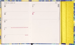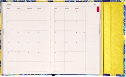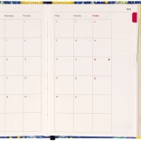 Ten stylowy dziennik oferuje horyzontalny układ tygodni na dwóch stronach, co umożliwia łatwe planowanie i miejsce na notatki. Dostępne są również praktyczne miesięczne przeglądy, które są idealne do planowania wakacji lub urlopów. Jego kompaktowy rozmiar 11 x 16 cm jest idealny do codziennego noszenia.