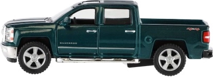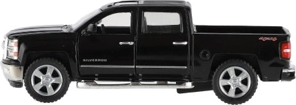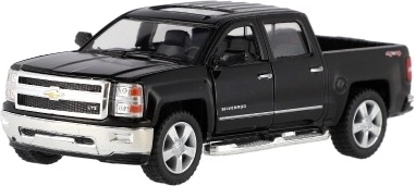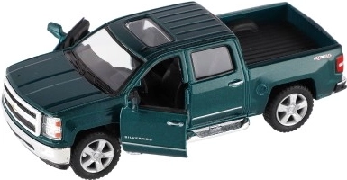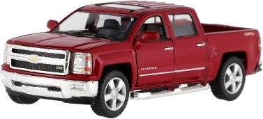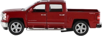 Ciesz się szczegółową repliką kultowego pick-upa CHEVROLET Silverado 2014. Metalowa karoseria z plastikowymi dodatkami, precyzyjny lakier i wierne proporcje ucieszą małych kierowców i kolekcjonerów. Samochodzik ma otwierane drzwi, dzięki czemu można obejrzeć dopracowane wnętrze.
