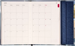 Dziennik zawiera także miesięczne przeglądy, które są idealne do planowania wakacji i urlopów oraz obejmuje święta międzynarodowe.