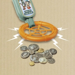 Ten lekki i łatwy w obsłudze wykrywacz metali świetnie nadaje się na pierwsze kroki w świecie poszukiwania skarbów. Reakcja dźwiękowa i świetlna natychmiast informuje o znalezionych metalowych przedmiotach, dzięki czemu dzieci szybko zrozumieją, jak działa wykrywacz.