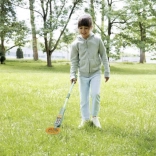 Dzięki regulowanemu wysięgnikowi 61–81 cm wykrywacz rośnie razem z dzieckiem i zapewnia wygodny zasięg także podczas dłuższych poszukiwań. Odpowiedni do ogrodu, na plażę i na spacery na łonie natury.