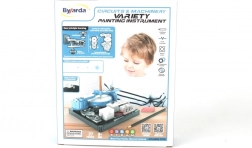 W komplecie znajduje się pojemnik na dwie baterie AA (3 V) z bezpiecznikiem przeciwzwarciowym, który zasila silnik i zapewnia płynne działanie mechanizmu rysującego. Dzieci praktycznie opanują zasadę obwodu szeregowego i mogą eksperymentować z przekładniami – przyspieszającymi i redukcyjnymi.