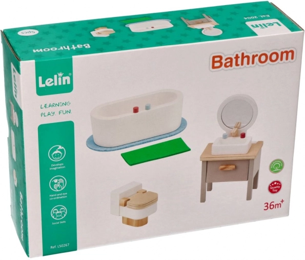 Łazienkowe mebelki do domku dla lalek zachwycają pięknym designem i pozwalają dzieciom rozwijać kreatywność podczas zabawy. Odpowiednie od wieku 3 lat.