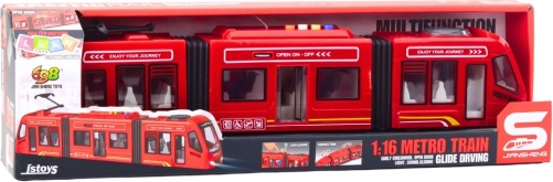Model miejskiego metra w skali 1:16 przedstawia realistycznie odwzorowany pojazd szynowy, który ucieszy każdego miłośnika transportu publicznego. Dzięki klasycznemu czerwono kolorystycznemu schematowi i dopracowanym detalom zachwyca jak prawdziwy pociąg znany z linii miejskich. Wysoka jakość materiału zapewnia trwałość zabawki, a liczne funkcje angażują dzieci w aktywną i kreatywną zabawę.