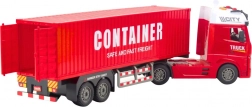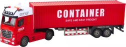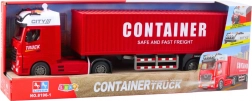 Czerwony samochód ciężarowy z serii City Series to szczegółowo opracowany model dla dzieci, które chcą poznać świat transportu. Składa się z ciągnika i długiej naczepy z odłączanym kontenerem, co jest idealne do odgrywania scenariuszy transportu, załadunku i rozładunku oraz własnych scenariuszy logistycznych.