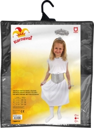 Uroczy kostium karnawałowy dla dziewczynek z motywem anioła w srebrno-białym kolorze. Idealny dla grupy wiekowej 6–8 lat.