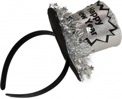 Świętuj stylowo nadejście Nowego Roku z tym srebrnym mini kapeluszem przymocowanym do wygodnej opaski. Ten elegancki dodatek doda Twojej stylizacji odświętnego charakteru i z pewnością przyciągnie uwagę na każdej sylwestrowej imprezie.