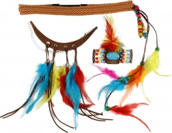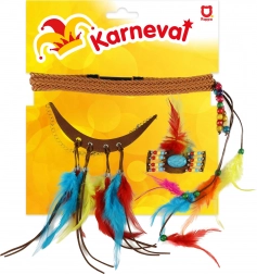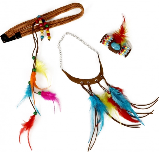 Uzupełnij swój indiański kostium tym wspaniałym zestawem akcesoriów, który zawiera naszyjnik, bransoletkę i opaskę na głowę.