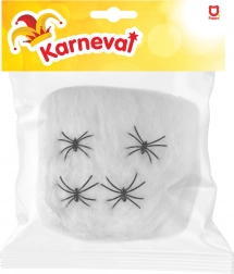 Idealna dekoracja na imprezę Halloween! Zestaw zawiera pajęczynę oraz cztery plastikowe pająki, które można łatwo umieścić w dowolnym miejscu, aby uzyskać dodatkowo straszny efekt.