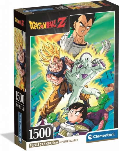 Zanurz się w świecie Dragon Ball Z dzięki temu niesamowitemu puzzle składającemu się z 1500 elementów od marki Clementoni, które po ułożeniu mierzy około 59,5 x 84,5 cm.