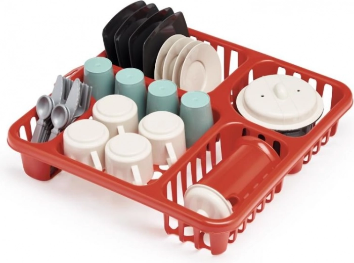 Ten dziecięcy zestaw naczyń z ociekaczem zrobi z każdego kuchennego kącika miejsce pełne fantazji. Dzieci mogą zanurzyć się w zabawie, naśladując dorosłych podczas gotowania i serwowania.