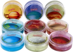Odkryj kosmos w zabawny sposób dzięki glutowi inspirowanemu planetami! Każdy przezroczysty pojemnik skrywa kolorowy, wolno rozciągający się glut z motywami planet, takimi jak Saturn, Jowisz, Ziemia czy Neptun. Świetna zabawkа sensoryczna dla dzieci od 3 lat, która wspiera kreatywność i motorykę małą.