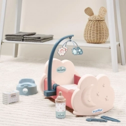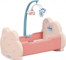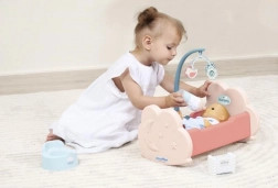 Niesamowite łóżeczko dziecięce dla lalek z kompletem akcesoriów do doskonałej zabawy. Zawiera karuzelę nad łóżeczko, butelkę, nocnik i grzebień dla najlepszego doświadczenia opieki nad lalkami.