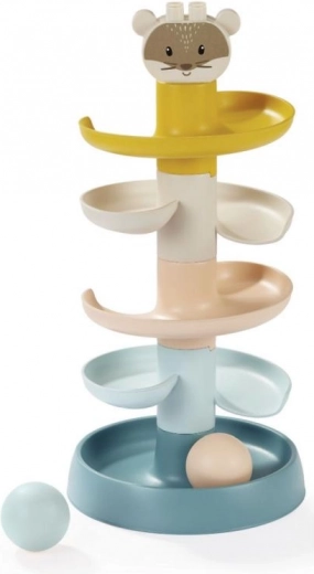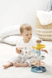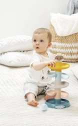 Wieżę do złożenia w delikatnych kolorach, która jest atrakcyjna dla małego dziecka.