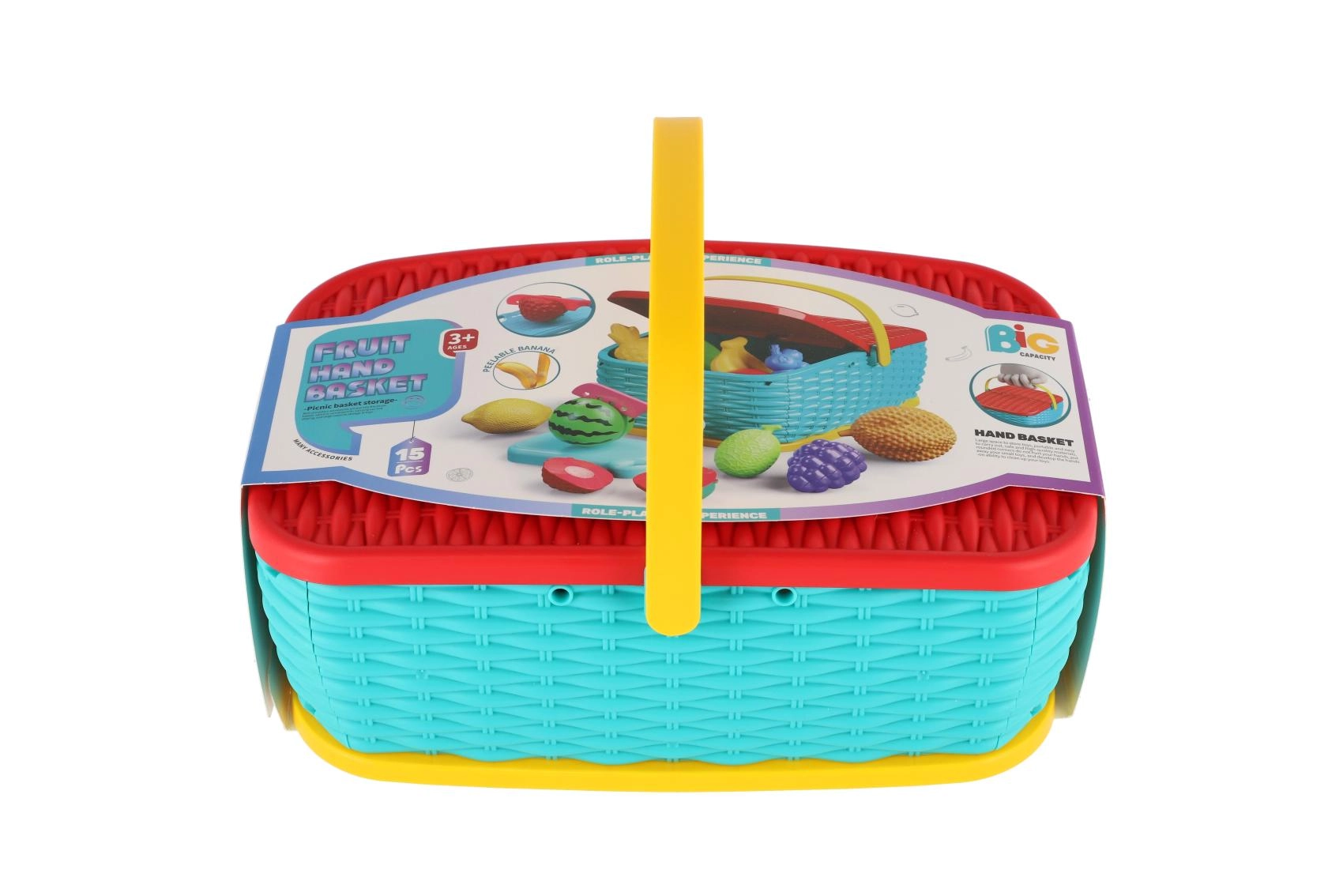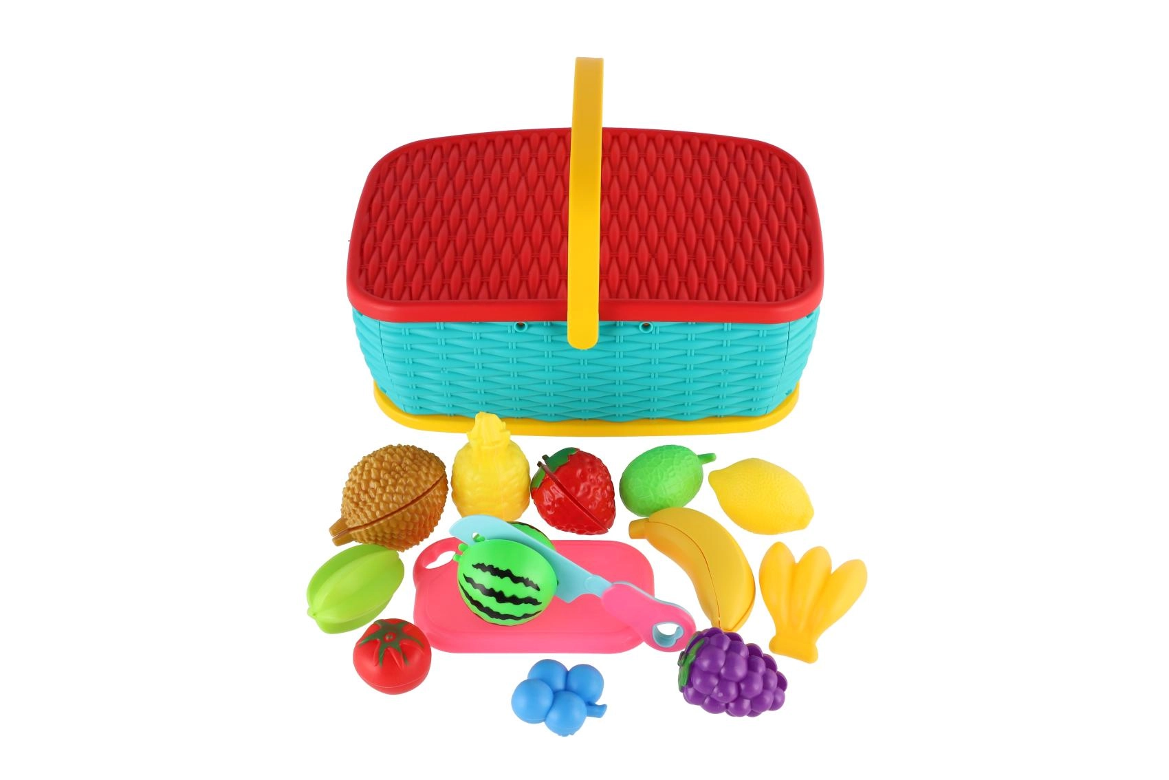 - Koszyk, plastikowy nożyk, deseczka, owoce i warzywa na rzep (łącznie 15 elementów)