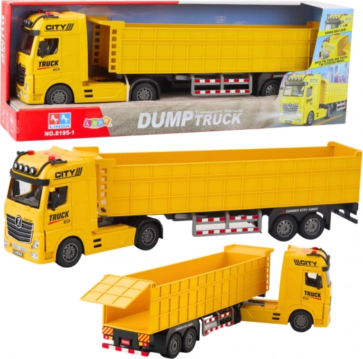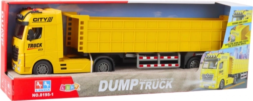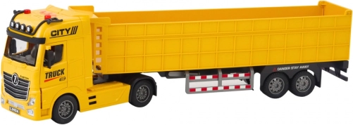 Żółta ciężarówka oferuje efektywny i dynamiczny model, który pokochają wszyscy entuzjaści dużych maszyn. Dzięki realistycznym funkcjom, takim jak wysuwana naczepa, pozwala odgrywać scenariusze transportu ładunku lub pracy na placu budowy.