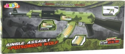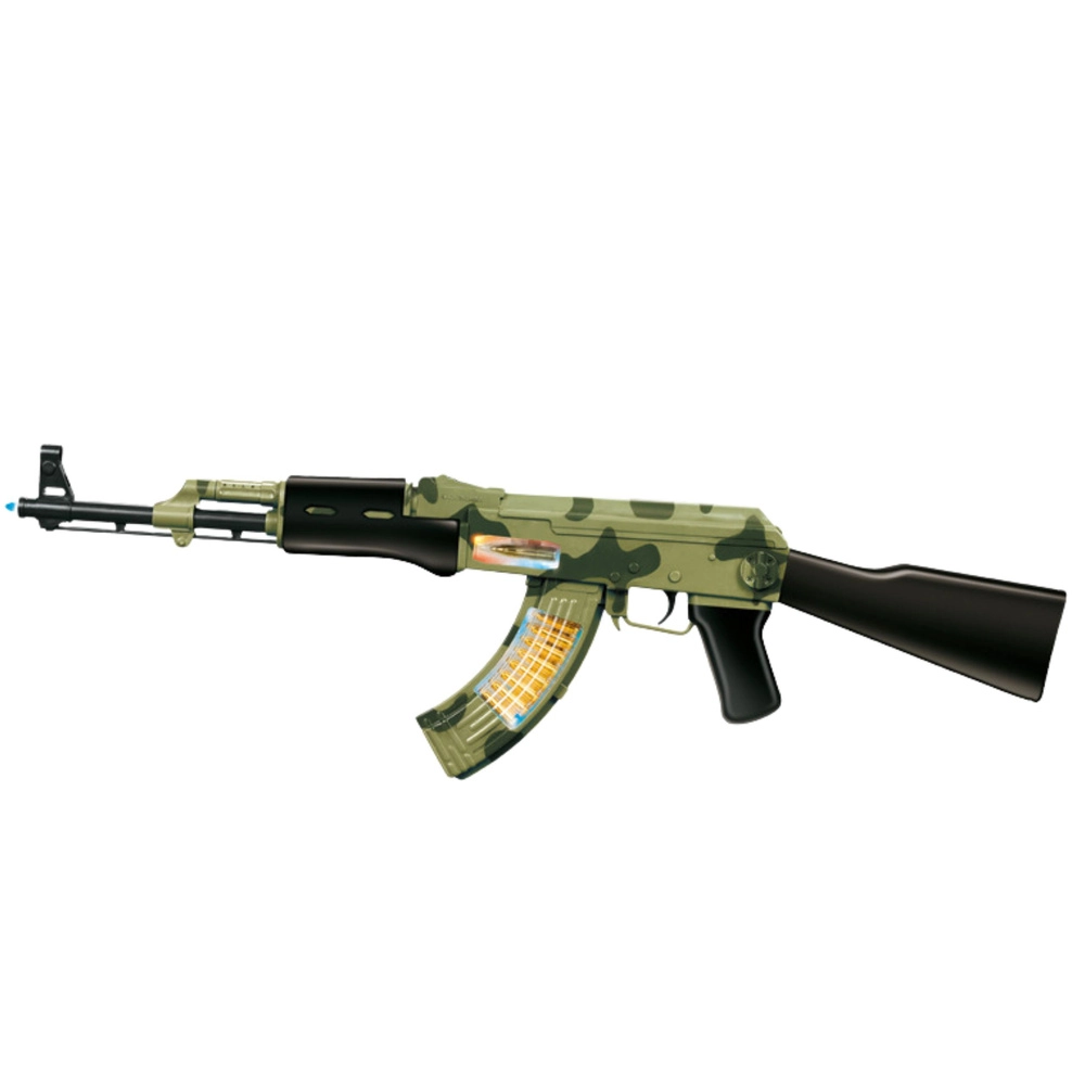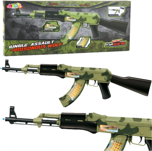 Ten wojskowy karabinek w kolorystyce moro, z dopracowanymi detalami przypominającymi prawdziwą broń, wyróżnia się nie tylko wyglądem, ale też dużą długością – aż 70 cm. Po włączeniu karabinka aktywują się efekty świetlne i wibracje, które potęgują realizm zabawy i pozwalają w pełni wczuć się w rolę żołnierza.