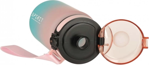 Sportowa butelka w różowo-niebieskiej wersji kolorystycznej to idealny towarzysz Twojej codziennej aktywności. Dzięki ustnikowi i pokrywce możesz łatwo pić w ruchu bez obaw o rozlanie wody.