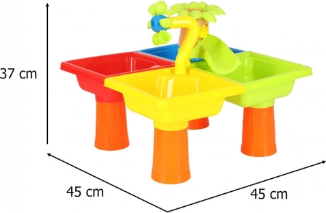 Wodny stolik i piaskownica w jednym to idealne rozwiązanie do ogrodu, na taras lub balkon. Stolik z oddzielonymi komorami pozwala dzieciom bawić się zarówno wodą, jak i piaskiem. Dzieci mogą tworzyć własny wodny port i przeganiać nudę także na plaży.